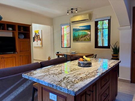 Se presenta AV 162, una joya contemporánea cuidadosamente mantenida que ofrece vistas al mar y numerosas mejoras personalizadas, todas integradas con un diseño elegante. La planta baja te recibe con una cocina y sala de concepto abierto, llenas de luz natural. La cocina está equipada con electrodomésticos de acero inoxidable de alta gama, cubiertas de granito y mobiliario con estilo. Una amplia despensa alberga el sistema de filtración de agua para toda la casa y ofrece excelente espacio de almacenamiento. La sala ha sido mejorada con un área de estudio y cuenta con acceso interior al baño de visitas y a la recámara secundaria.