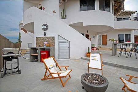 Bienvenido a tu pedacito de paraíso en Baja, ubicado en El Sargento, BCS — una casa de 136 m² totalmente amueblada dentro de una comunidad privada de solo 5 residencias. Esta vivienda de diseño arquitectónico único y forma circular cuenta con un impresionante techo de palapa, que mantiene el interior fresco y ventilado. En la primera planta encontrarás dos recámaras con baño privado, mientras que en la planta superior se ubica la recámara principal, la cocina y el comedor con acceso a un balcón. Una escalera en espiral te lleva a la terraza en la azotea, desde donde se aprecian vistas panorámicas de la Isla Cerralvo y el Mar de Cortés. Ideal tanto para vacaciones como para vivir a tiempo completo, a solo minutos de restaurantes, cafeterías, servicios locales y, para rematar, el área de playa. Perfecta para quienes buscan comodidad, estilo y aventura en uno de los mejores destinos del mundo para practicar kitesurf y windsurf.