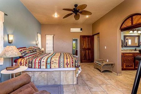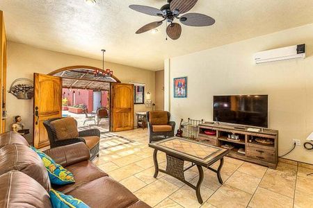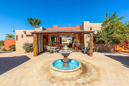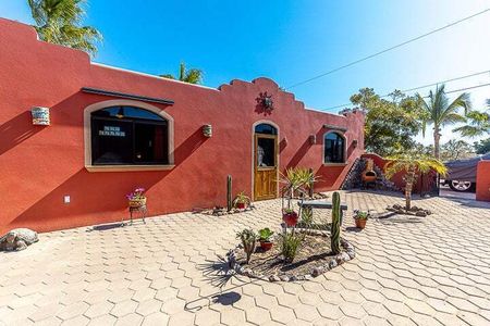 La casita incluye una sala de estar, una pequeña cocina y un baño completo. El amplio patio delantero, adornado con árboles de mango, y el patio trasero ofrecen espacio para estacionar un RV o bote. Una tranquila terraza en el patio interior y una azotea con impresionantes vistas al Mar de Cortés y las Sierras completan esta encantadora propiedad, ubicada a pocos minutos en auto de la playa.