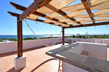 Hermosa terraza en la azotea con vistas espectaculares, perfecta para disfrutar los atardeceres de Baja