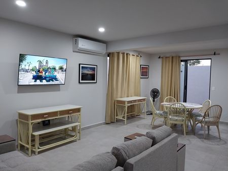 La casa está equipada con aire acondicionado en todas las recámaras y salas de estar, cocina completamente equipada con estufa de gas, lavavajillas, microondas, refrigerador con congelador, así como lavadora y secadora. Además, el servicio de internet (Telmex) y el agua de la ciudad están incluidos en la renta mensual, lo que hace tu experiencia aún más práctica y cómoda.