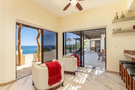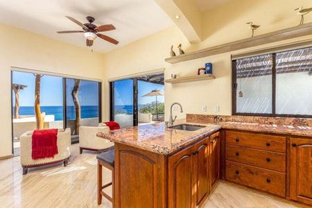 Ubicada en una colina en un espacioso lote de 1500 m² en el deseable vecindario de Las Brisas, al norte de Los Barriles, Casa Mirador (construida en 2014) ofrece impresionantes vistas despejadas del Mar de Cortés, desde La Ribera hasta Punta Pescadero. Esta amplia propiedad cuenta con 120 m² de espacio habitable, incluyendo una cocina completamente equipada (con encimeras de granito y pisos de travertino), además de dos habitaciones adicionales y 2.5 baños, ideales para invitados o rentas. Disfruta de cenas al aire libre bajo una hermosa pérgola de Palo de Arco y aprovecha la cocina exterior con asador. A solo 5 minutos en coche de Los Barriles, las playas cercanas y comodidades como las canchas de pickleball Tres Palapas. La casa se vende parcialmente amueblada.