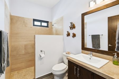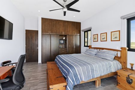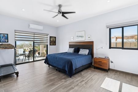 Up to 10% discount on lots and homes through the end of March! Casa Tecolote is a 3BR/2BA home with 180m2/1,941ft2 of interior living space opening onto a large 54m2/580ft2 covered patio with tiled roof. The stone front entry welcomes visitors into an open living/kitchen/dining area featuring 10' ceilings, a large built-in pantry, and dual sliding glass doors that open onto the terrace. Custom-built hardwood cabinetry, oversized tile, granite countertops and stainless appliances are included. The master suite has dual vanities in the bath, marble tiled shower and walk-in closets. The house also includes 2 guest BRs, a guest bath, laundry, A/C units and ceiling fans.