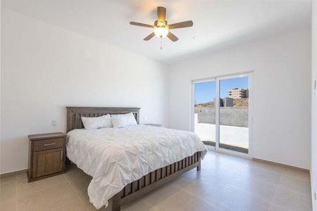 Ubicado en una exclusiva comunidad en la ladera, a pocos pasos de la mundialmente famosa playa de surf Cerritos, este amplio condominio de dos recámaras y dos baños ofrece un diseño elegante y contemporáneo que combina comodidad, estilo y el relajado estilo de vida de Baja.