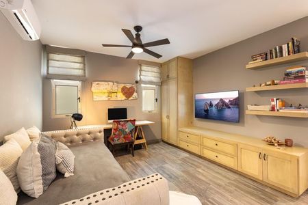 Esta unidad de una sola planta es amplia y luminosa, con un diseño de concepto abierto que conecta a la perfección los espacios interiores y exteriores. Ofrece 2 recámaras más una sala de TV (que puede convertirse fácilmente en una tercera recámara) y 2 baños completos, brindando gran flexibilidad: ya sea que necesites tres recámaras completas o prefieras usar la tercera habitación como sala de TV o área para invitados. El condominio cuenta con un diseño moderno, múltiples mejoras y carpintería personalizada.