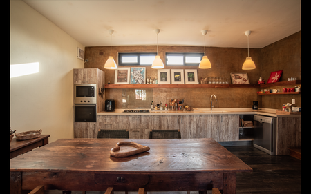 La arquitectura destaca por sus cúpulas de ladrillo, cemento pulido, detalles en madera, asi como algunos muros de ladrillo, detalles que armoniza en buen gusto y generan un ambiente acogedor . Las ventanas y puertas de VAESA incluyen mosquiteros, mientras que la cocina del Penthouse y el baño principal cuentan con diseño de Mi Cocina, con top de Corian y accesorios TEKA. Las puertas son de Parota y el walk-in closet también ha sido diseñado por Mi Cocina.
