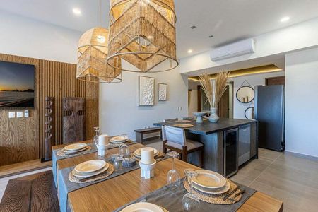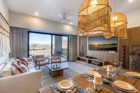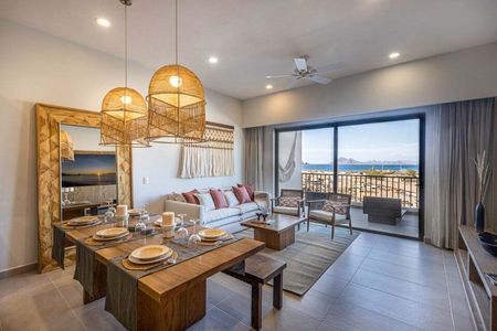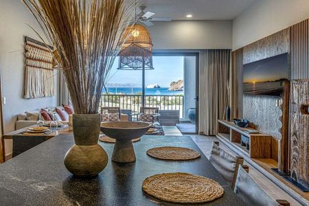 Al ingresar directamente desde el elevador a tu condominio Mantarraya de 1916 pies cuadrados y dos habitaciones, quedarás impresionado por las increíbles vistas de la Bahía de Danzante y las Islas de Loreto. La amplia isla de granito y la cocina totalmente equipada conducen a la espaciosa sala y comedor. Relájate después de una mañana de golf o esnórquel en la terraza cubierta y disfruta de esta magnífica propiedad durante todo el año. La recámara principal cuenta con un amplio ventanal, un elegante baño con tina, una gran ducha de mármol y tocadores con doble lavabo. La habitación de invitados dispone de clósets empotrados, un baño completo con ducha de mármol y una puerta de vidrio corrediza que se abre a un balcón con impresionantes vistas a la Sierra La Giganta.