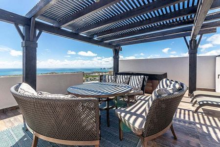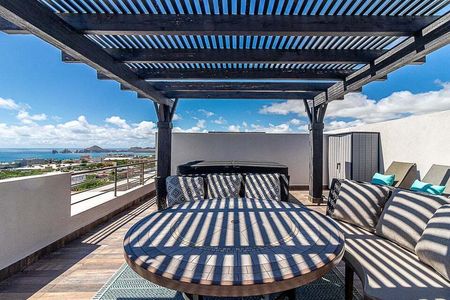 Este impresionante penthouse ofrece vistas panorámicas al icónico Arco de Cabo San Lucas y cuenta con su propia terraza privada en la azotea con acceso interno, el lugar perfecto para relajarte en el jacuzzi mientras disfrutas de la vista al mar.