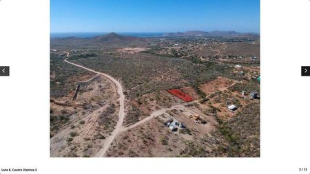 Ubicado detrás del encantador pueblo de Pescadero, este lote de 1/4 de acre (1,000 m²) ofrece impresionantes vistas a la Sierra de la Laguna y al Océano Pacífico. Situado justo después de Rancho Cuatro Vientos, en el lado sureste de Pescadero.