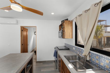 La primera reventa disponible en Vista Sol. Los vendedores cambiaron sus planes y no regresarán a Baja. Gran potencial de renta. La Unidad 8 está amueblada y lista para mudarse. Es un verdadero dúplex con 2 dormitorios, 1 baño, sala y cocina en el nivel inferior. El nivel superior, con entrada independiente, cuenta con 1 dormitorio, 1 baño, sala y cocina. Azotea extragrande con pérgola, cocina al aire libre/área de barbacoa y vistas de 360 grados. Los interiores cuentan con pisos de baldosas, encimeras de concreto pulido, carpintería de alta gama, ventiladores de techo y unidades de aire acondicionado.